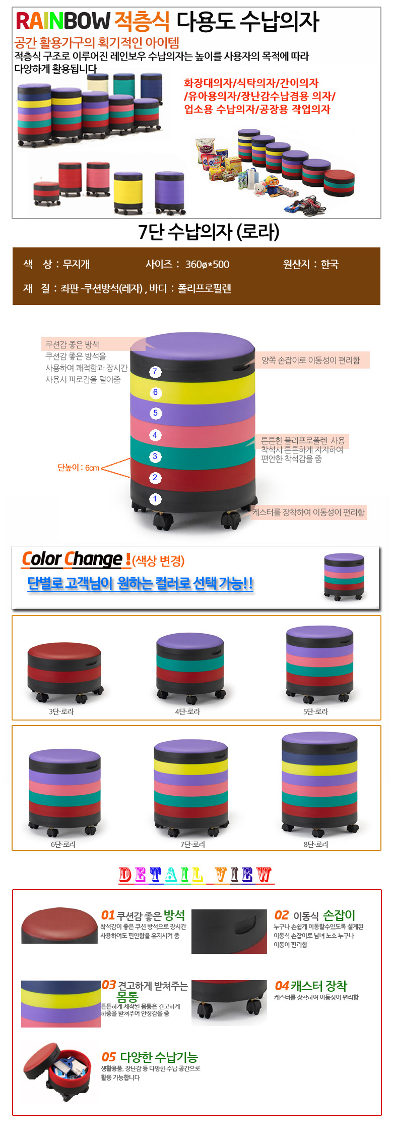 7단수납의자-로라(무지개)
